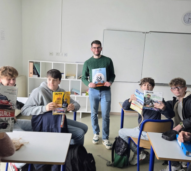 Hier, les élèves de seconde ont rencontré Medhi, qui leur a raconté dans un premier temps son parcours, de ses années de collège à St Jo , à ses deux participations en tant que journaliste sur le tour de France, à ses années de Lycée et ses premières expériences en tant que pigiste journaliste pour la presse locale, à son année de prépa littéraire, puis ses études dans une école de journaliste...et son métier de journaliste de sport mécanique (pour une revue nationale ), avec des déplacements sur des circuits automobiles prestigieux à travers le monde ( États Unis, en Malaisie ), mais aussi sur le Paris Dakar , le circuit de Monaco , sans oublier le mythique ’’ 24 du Mans ””... Puis Medhi s est livré à un jeu de question/réponse. Les élèves ont ainsi découvert un métier et ses coulisses. Medhi leur a montré à travers son témoignage que ” la passion , le travail, et la persévérance ” ont été les clefs de sa réussite.