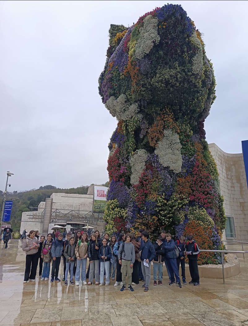 Les élèves de sixièmes sont partis à la découverte de la ville de Bilbao qui leur a révélé sa richesse historique, architecturale et culturelle. Dans le musée Guggenheim, ils ont appréhendé les installations immersives, l’art de la performance et des sculptures qui, faisant appel aux savoir-faire des techniques de l’artisanat, interrogent le spectateur sur notre relation à la nature.